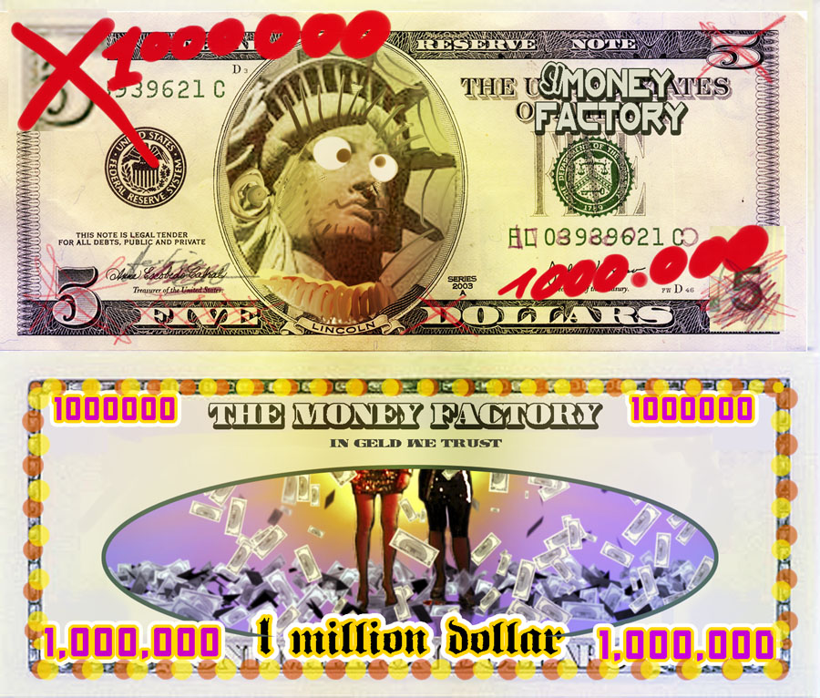 Wir drucken eigenes Geld. Künstler werden eingeladen 1 000 000 Dollar